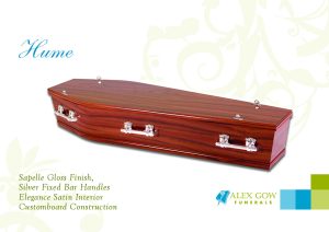 Alex Gow Funerals offers a range of Coffins and Caskets to suit most people’s styles and budget, and all are made in Australia by 100% Australian owned companies. The prices for the coffins shown here start at $1498 for a simple, very presentable timber look veneered MDF coffin and move up to $7455 for a solid timber hand constructed casket.