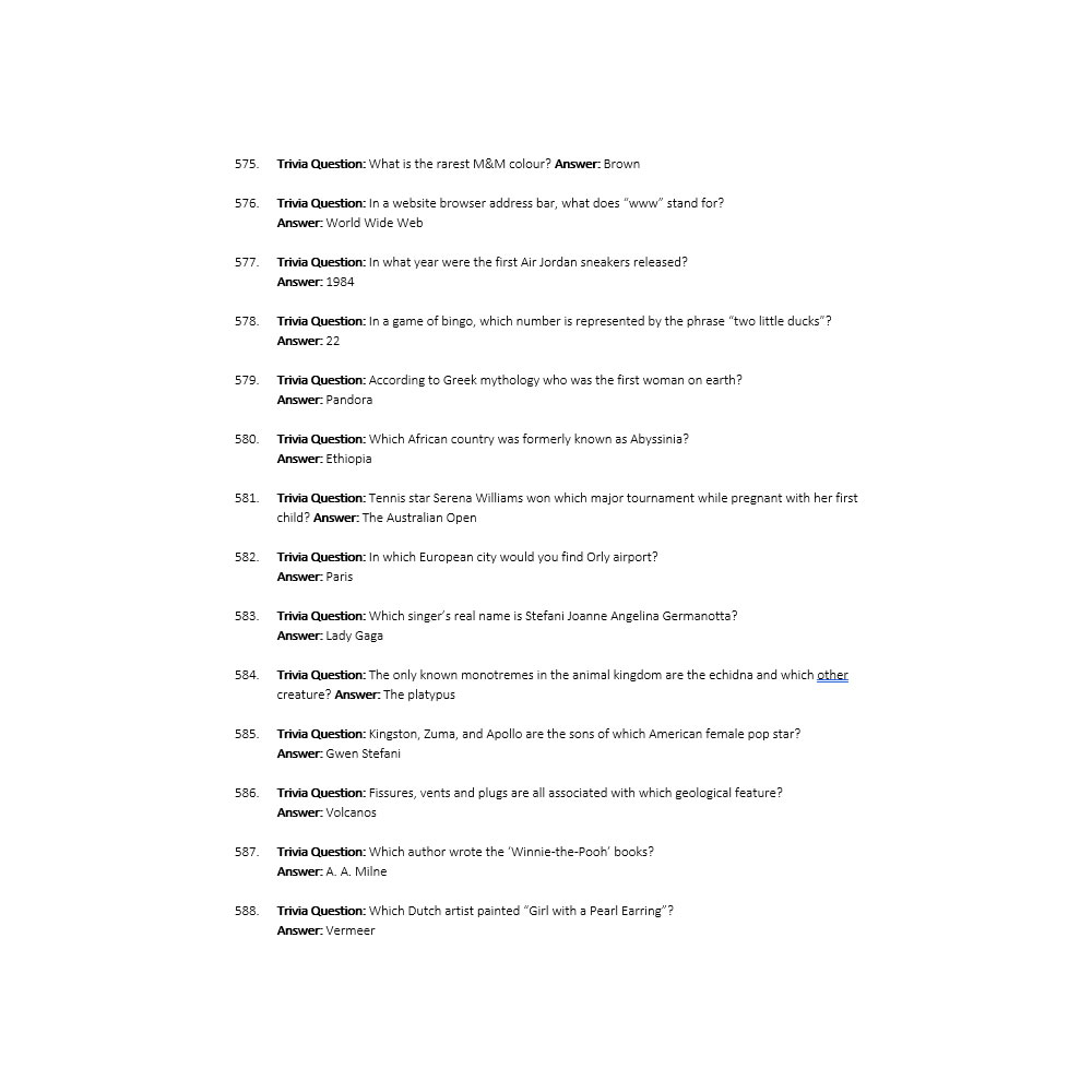 - Trivia October 2020